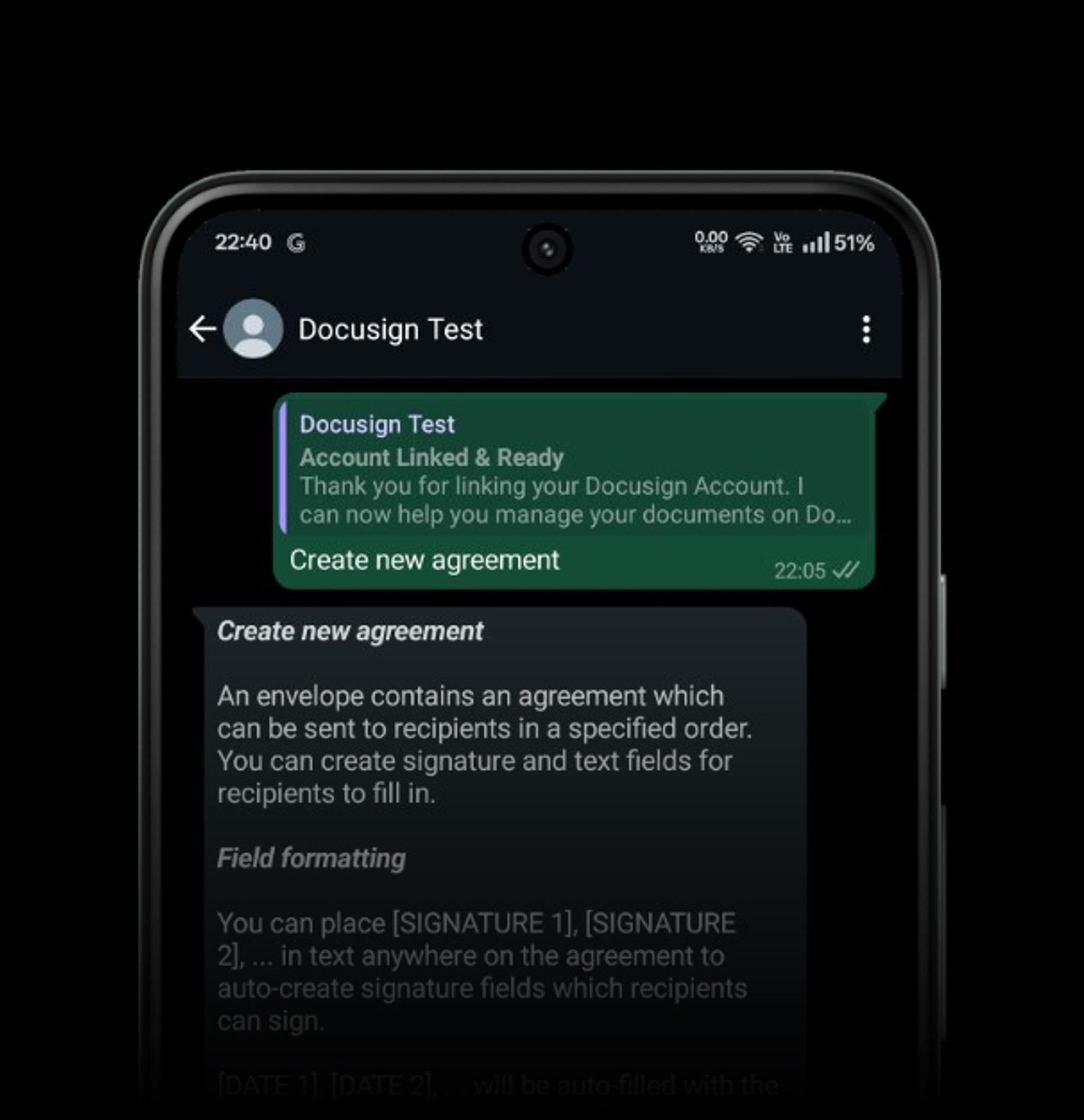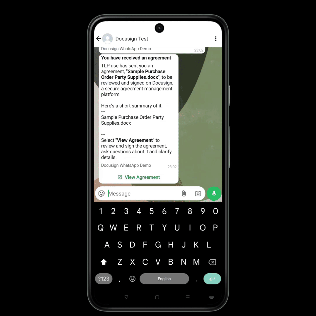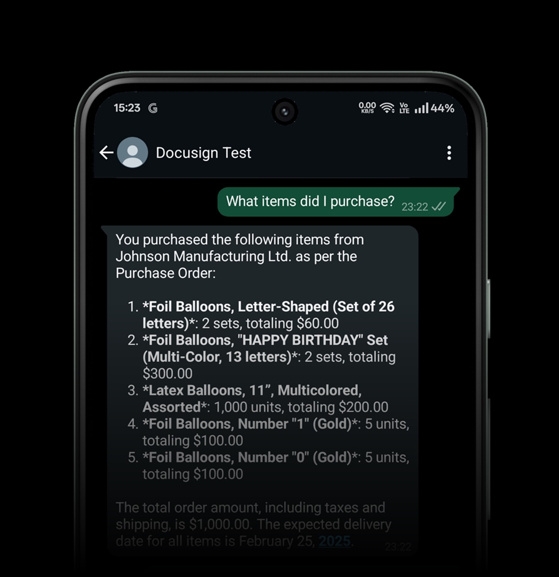 Powered by Docusign Navigator, our agreements chatbot will search through your agreement repository to